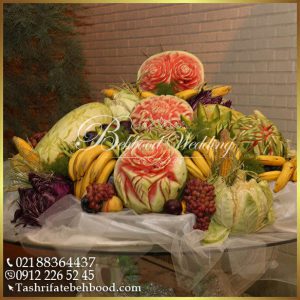 میوه آرایی به سبک ساده ولی شیک با شکل های خلاقانه ، زیبایی مجالس عروسی را دو چندان مینماید. گروه میوه آرایی مجموعه تشریفات عروسی بهبود خالق ایده های خاص و کم نظیر جهت تزئین میز پذیرایی میوه و بار میوه.